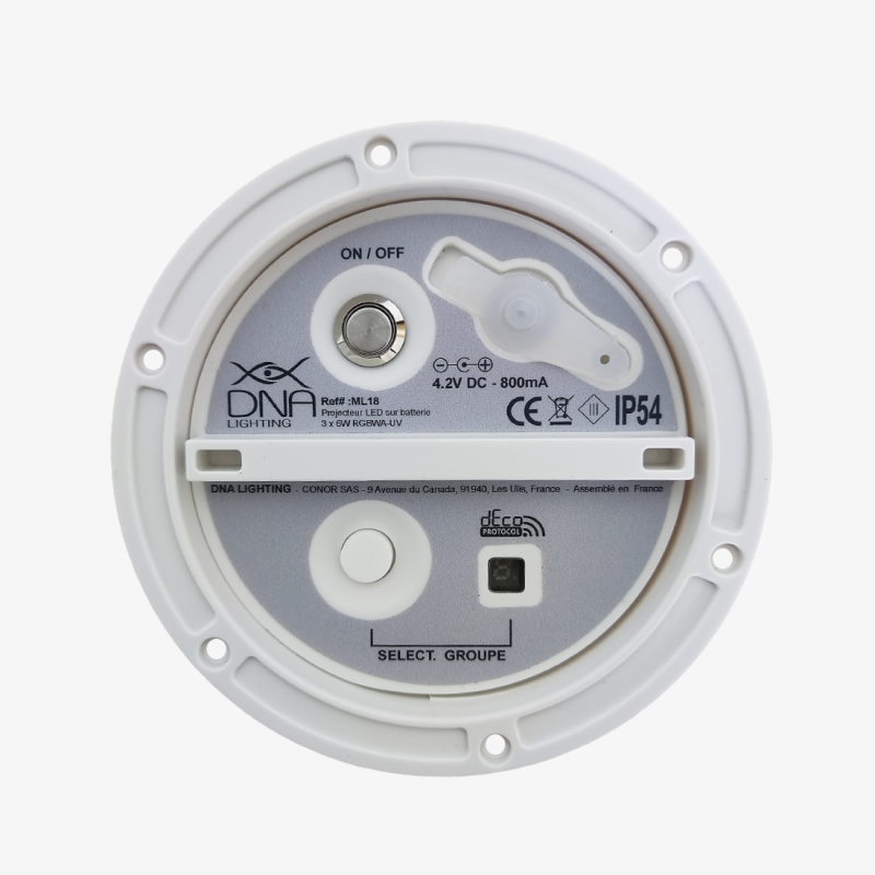 - Battery powered for screwing- IP54- RGBWA-UV (6-in-1) 3 x 6W- With IR remote control- 8 DMX channels- 8 hours of battery life in monochrome- Supplied with charger and adapter ring- Batch control option: Wifi battery controller KONTROL 8