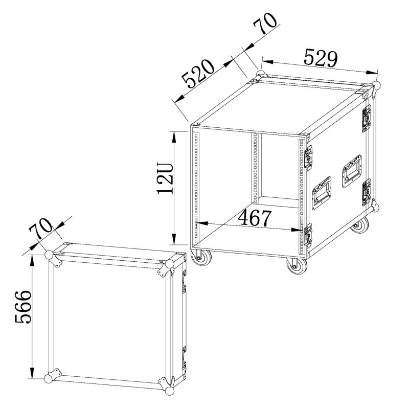 Rack Pro 12U - With wheels - Full Black