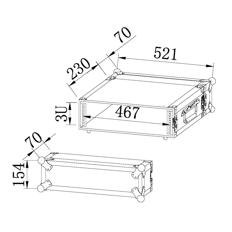 2 Handles4 Butterfly latches2 Covers4 FeetDimensions: 521 x 370 x 154 mmWeight: 5 kg