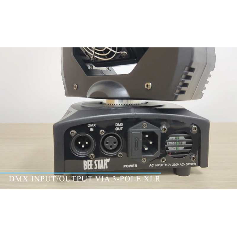 Le Bee Move Spot 60R dispose de 9 ou 11 canaux pour la gestion DMX, d'un focus manuel, d'un menu DMX à 4 boutons, d'un gradateur électronique (0-100%) et d'un effet Gobo Shake.